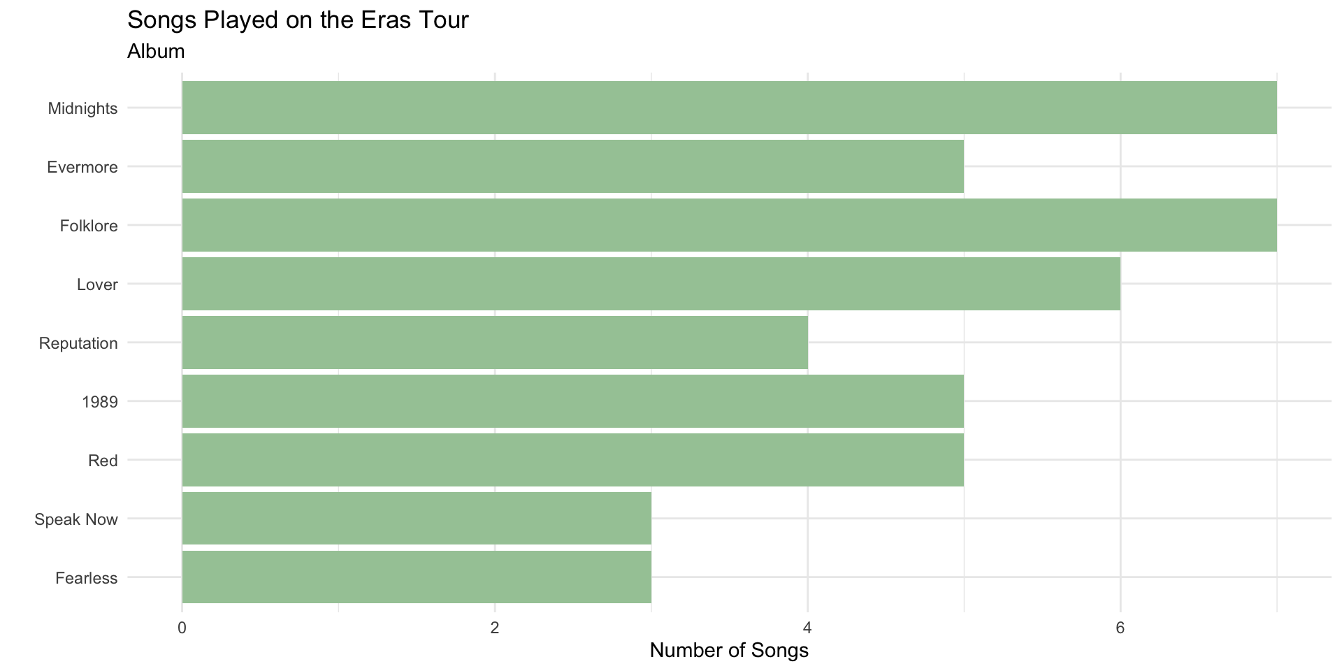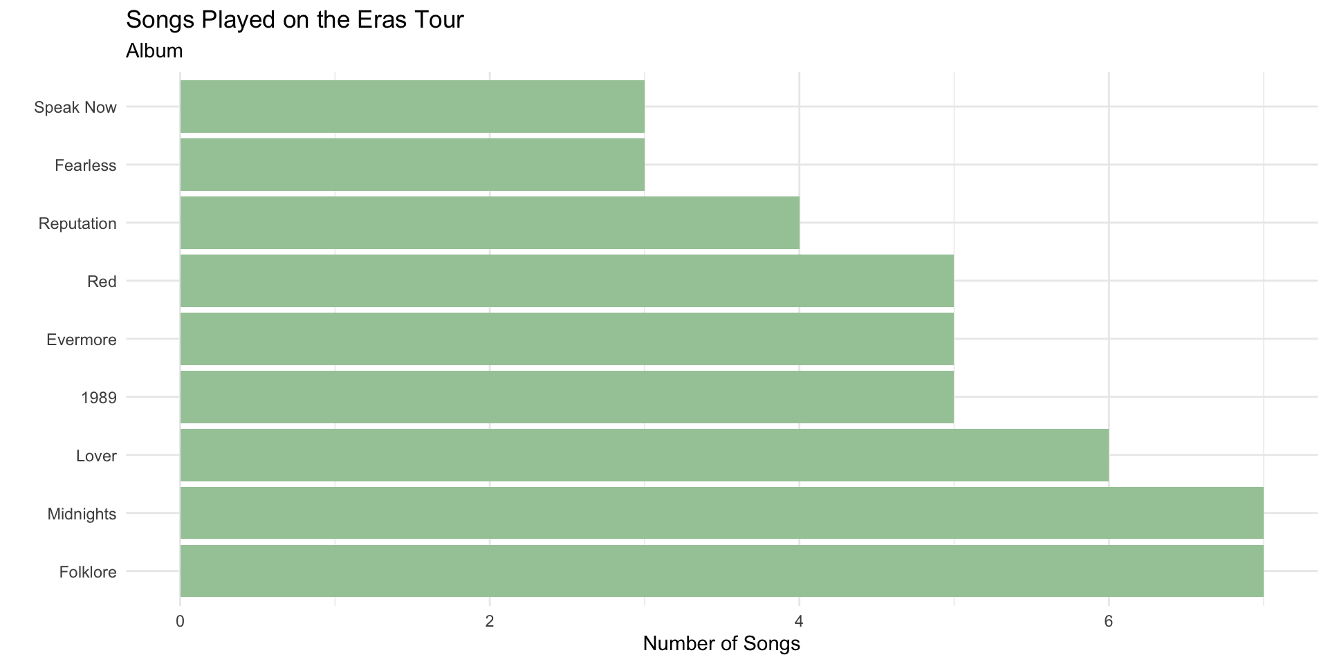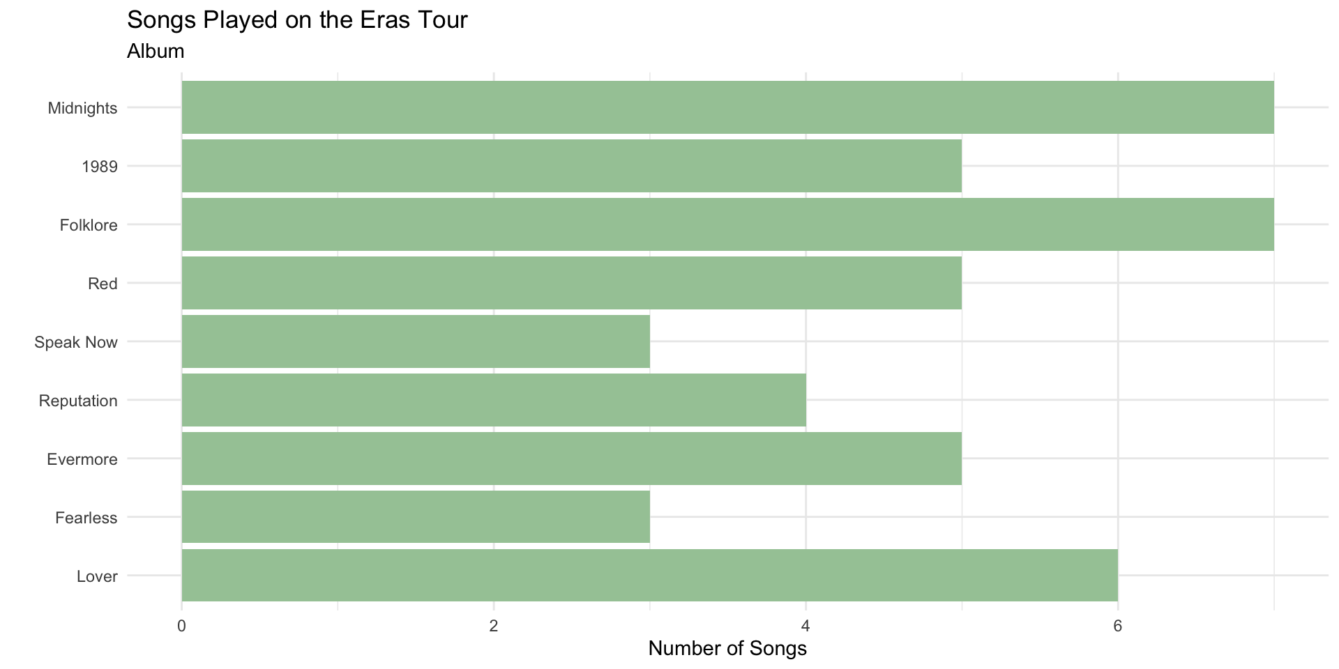 geom_bar(aes(y = Album), fill = "#A5C9A5") +