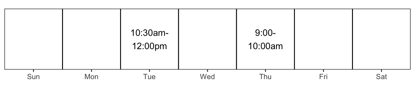 - Office hours are for you! During this time, I am available to talk about anything related to the course.